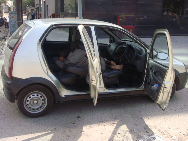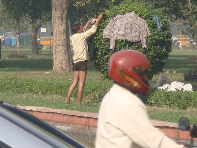 車窓からのデリーの朝の風景