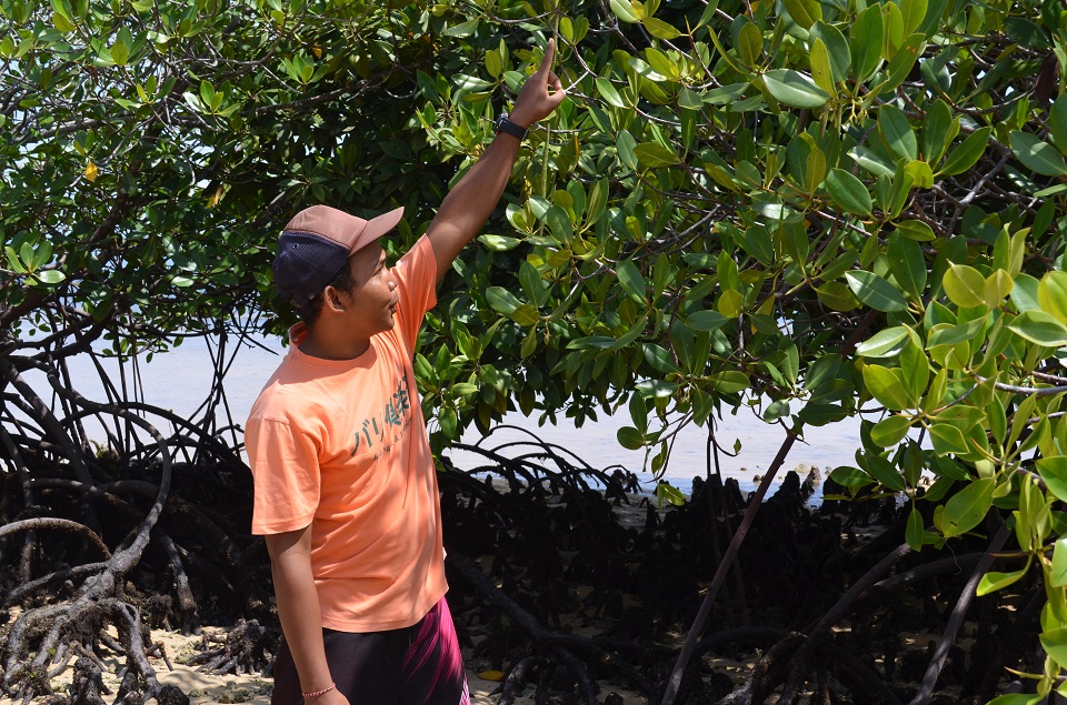 バリ倶楽部のガイドがマングローブとはどんな生き物なのかということを日本語で説明してくれます。