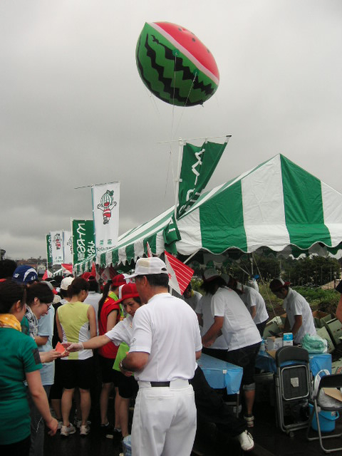 ゴール手前1km地点の『給スイカ所』でスイカ食べながらまってたよ~。